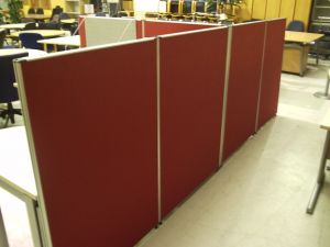 We frequently have partitioning in a range of different colours (mainly blue, purple and red) and sizes, please contact us for specific requirements. Prices start from £60.